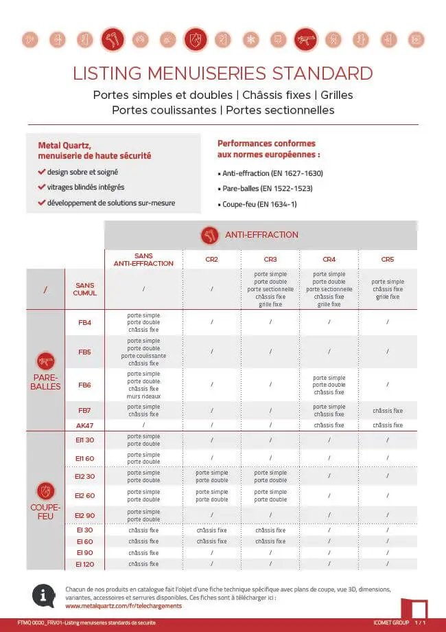 FTMQ 0000 | Listing menuiseries standards de sécurité Metal Quartz